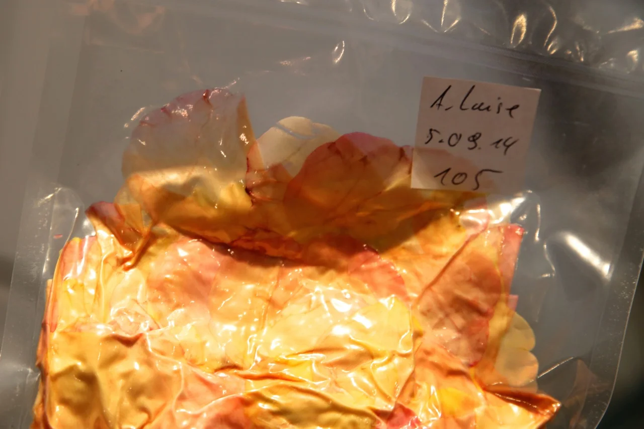 Svens Arbeitsplatz führt täglich in eine Welt der Schönheit. Auf seinem Hof in Nordstrand pflückt er die geöffneten Rosen, zupft deren Blätter ab, füllt sie in kleine Plastikbeutel, die er mit Datum und Sortenangabe versieht und dann einfriert. Tiefgefroren halten die zarten Blüten ihr Aroma, und sobald Sven genug zusammen hat, beginnt er sie einzukochen. Das Rezept für die sortenreine „Rosenmarmelade“ stammt von seiner Schwiegermutter, das Aroma hat ihn von Anfang an fasziniert.