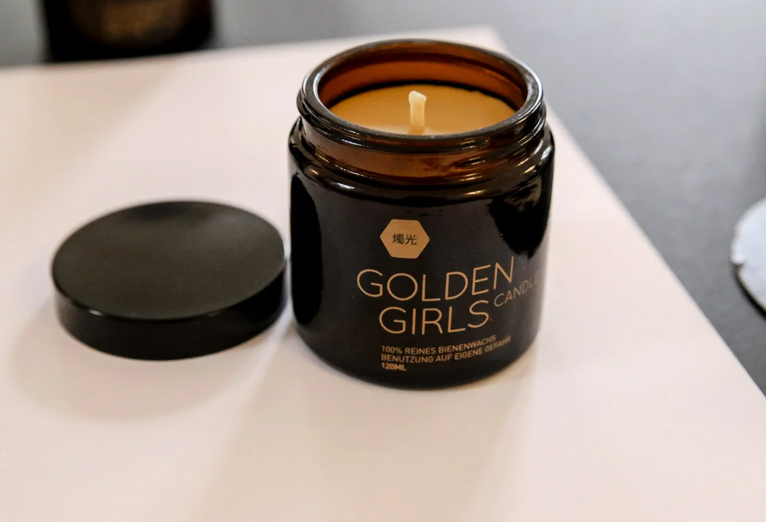 Dunkelbraun, fast schwarz sind die beiden Gläser, in goldgelber Schrift steht darauf: „Golden Girls Honey“ und „Golden Girls Candle“. Man möchte gleich die Deckel aufschrauben, den Inhalt ansehen, daran riechen. „Viele sagen, unsere Honiggläser sehen aus wie Beauty-Produkte. Das stimmt sogar. Denn durch unseren Beruf sind wir täglich mit schönen Fotos und Produkten umgeben, das färbt ab“, lacht Julia. Zusammen mit Ann sind sie hauptberuflich „Fotomaki“, die beiden retuschieren Fotos auf höchstem Niveau und geben ihnen den perfekten Look, vor allem für Mode und Beauty.